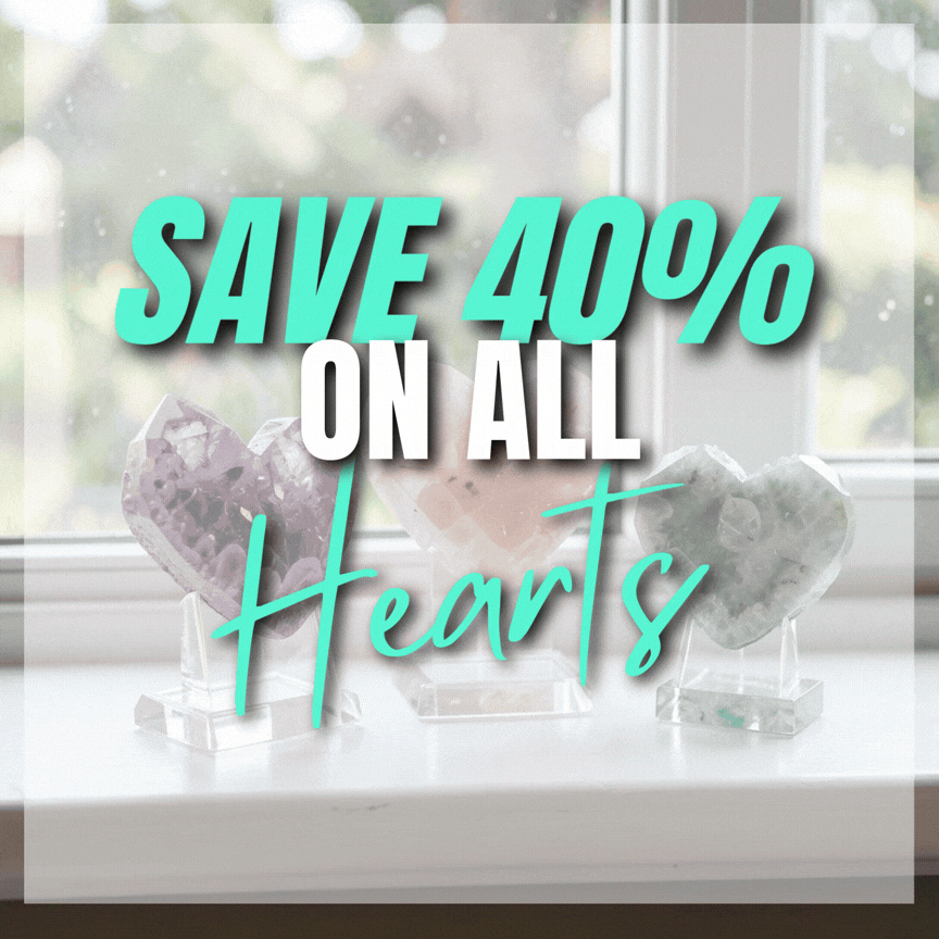 Get to saving this weekend with 40% off all Crystal Chips, Hearts and Palm Stones.