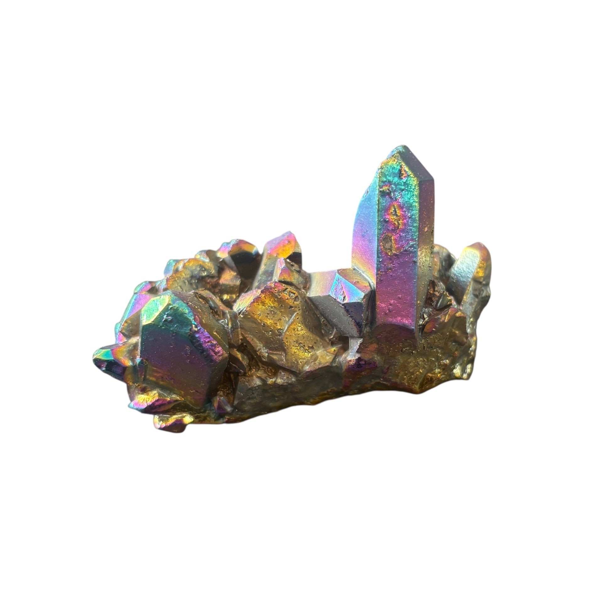 Aura quartz can have different properties or meanings dependent on the Quartz used. Aura quartz is part natural and part man made.