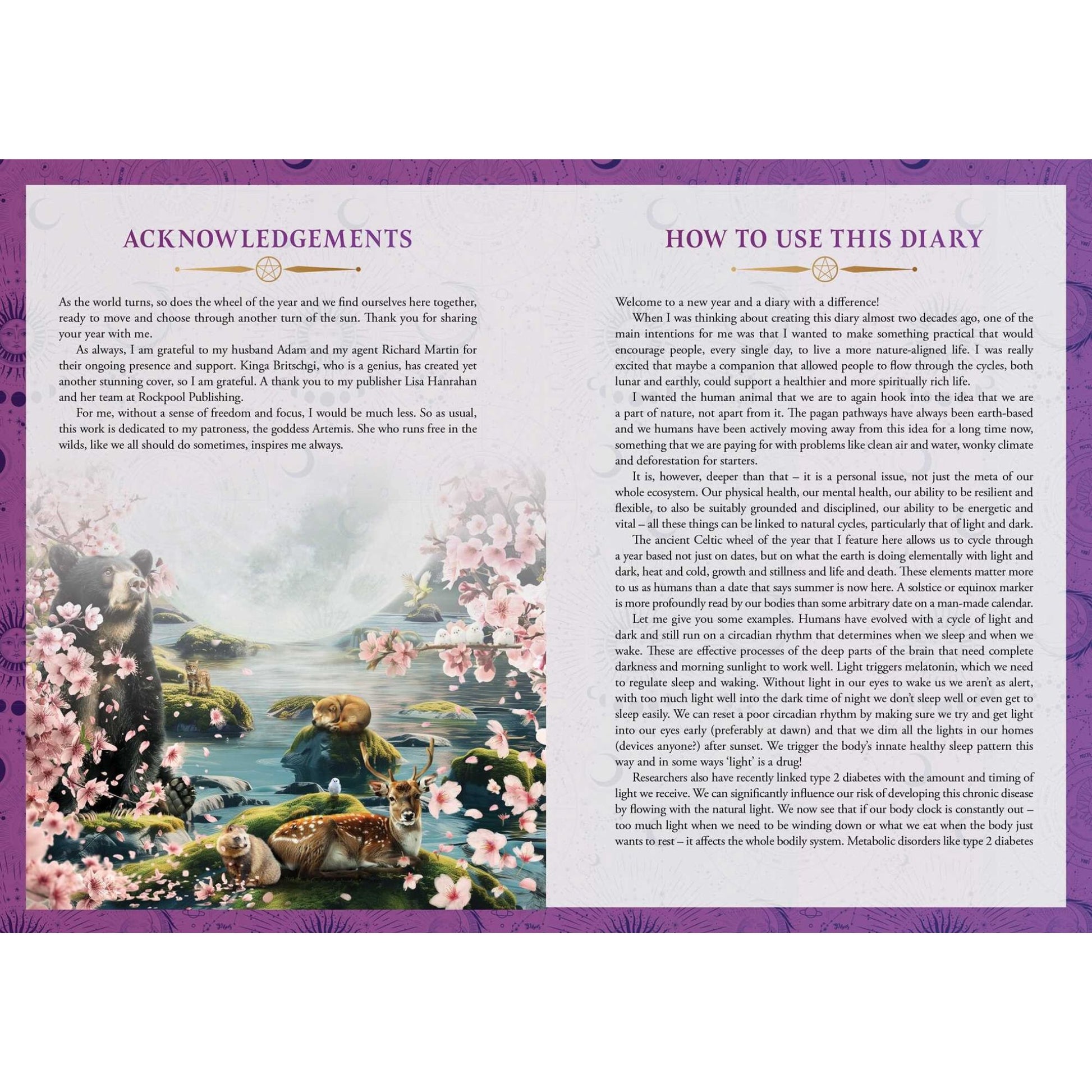 The diary includes lunar timings and explanations of the moon phases and their impact on humans, with practical magical suggestions to get the most out of the energies of each season. The 2026 diary is packed with invaluable tips and techniques ranging from increasing your wealth to improving your relationships, boosting your vitality and magnifying your personal power to removing obstacles and fears that are holding you back in your life.