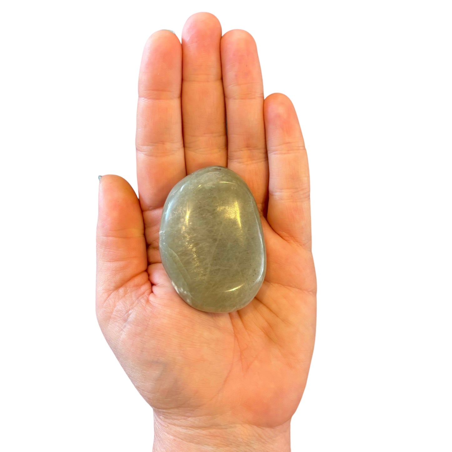 Green moonstone is a stone that is great for reflection. It opens the ability to just breathe and let go and just go with the flow of life.